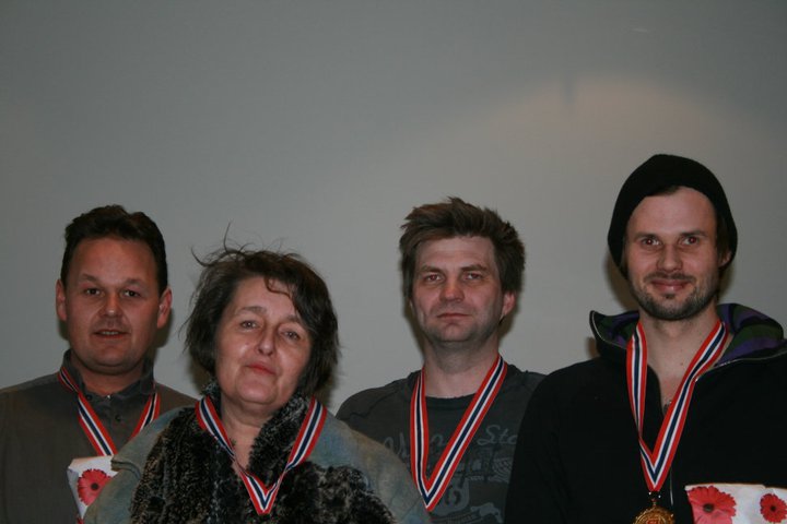 Fra premiesermonien (foto, Arild Jakobsen) ser vi Jan Frode Karlsen (Sykkylven), Siw Thoresen, Jo-Arne Ovesen og Johnny Hansen (Kristiansund) som spilte for Øsfold og Follo1.