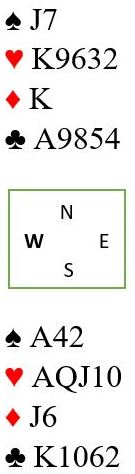 Hvis kløver ess spilles blir det selvsagt ingen problemer. Men vest kan også være den som har firekorts kløver. Med denne sitsen kan det bli to kløvertapere om kongen spilles først. Og om kløver ess spilles tidlig får vest to kløverstikk om esset spilles først.