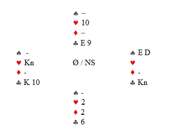 Mange sydspillere klarte ikke å stikke over makkers hjerter knekt andre gangen fargen ble spilt. Da forsvant det en hjerter hos vest på ruterkongen og 4sp føyk hjem. Gi vest en annen fordeling i rødt, f.eks 2-3 og ikke kløverkongen, så er det et stålegg å stikke makkers knekt. Da godspilles tieren til avkast av en ruter.