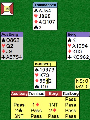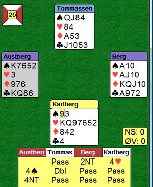 Landskampen i Ungarn var et løft for landslagstroppen. Selv om jeg ikke har rukket å bakspille alle parene like mye, har jeg sett mye glimrende kortspilling. i finalen var Petter Tøndel - Odin Svendsen - Per Erik Austberg - Jan Tore Berg 24 IMP bedre enn landsmennene for LAST. Jeg håper kaptein Vennerød sender meg noen ord der han oppsummerer innsatsen, gjerne med en vurdering av gode og mindre gode prestasjoner. Jeg vet han ikke vil si for mye om enkeltpar sine konkrete prestasjoner, men selv Drillo kom meg noe til oss journalister. Lenger nede kan du se mange spill fra helga og jeg håper du deler synet mitt.