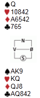 Er det noen som kan foreslå et kontrollert meldingsforløp fram til 6 hjerter i dette spillet (etter åpning i Nord), så meld gjerne fra.