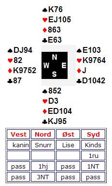 Siden Ruter streiket så grundig at vi ikke kunne gi butleroversikt, har vi regnet den ut i BK2000. Resultatlisten er/hadde vært litt annerledes etter gammel utregning, men butleren skulle være ok, selv om vi måtte foreta noen justeringer som følge av manglende lister. Butleren finner du her: http://nbfdata.bridge.no/Turnering/butler.asp?Fil=10733-juleswissbutler