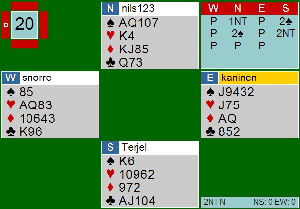 Jeg liker veldig godt det nye på hjemmesiden til NBF. Det gir på en god måte en kjapp oversikt over det nye og det aktuelle. De kommende turneringene vises tydelig og det samme med resultater fra de sist spilte turneringene. Hvis jeg har forstått rett, kan arrangøren på en enkel måte lage en link til LIVE resultatservice fra sin turnering. GLIMRENDE! Alle disse tingene bør kunne være med på å få opp interessen for turneringsbridge.