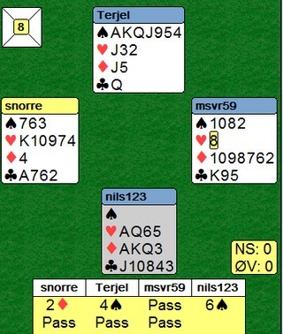 De deltok ikke i helgas NM damer, men viser med 81 poeng at formen er inne. I tillegg fikk de oppklart en misforståelse i et både viktig og frekvent posisjon. (spill 8). Det er jo bra.
