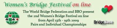 World Bridge Federation (WBF) og Bridgebase Online (BBO) arrangerer i fellesskap Women's Bridge Festival online 13.-19. april 2009.
