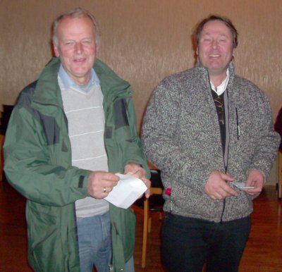 Vinnerene tv. Øystein Vasset og th. Geir Hjelmeland sammen med klubbens leder Terje Sæbø.