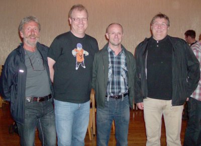 Vinnerne Ragnar Davidsen og Frode Nybo flankeres av Olav Ukkelberg og Arnstein Nymoen som tok sølv. Harald Solstad og Johan Finanger tok den siste premieplassen. Ragnar Davidsen og Frode Cantona Nybo vant årets Namsos Cup foran Olav Ukkelberg og Arnstein Nymoen. Karl Morten Lunna og Steffen Fredrik Simonsen tok den siste pallplassen. Vinnerne avsluttet turneringen sterkt og vant en fortjent seier etter å ha ligget litt bak sølvvinnerne etter 1. sesjon. Det var 6 pengepremier og en middelspremie samt en del spurtpremier. Det så ut til at spillerne trivdes og spillende turneringsleder Ragnar Davidsen holdt orden på regnskapet slik vi vet han kan. Eneste minus jeg fanget opp må være at vi får opp resultater og spill etter hver runde. Arrangørklubbens leder Oddbjørn Dyrkorn. Snakket med arrangørklubbens leder Oddbjørn Dyrkorn etter turneringen, og han var fornøyd med at de kunne arrangere turnering igjen i år etter avlysning i fjor. Vi takker Namsos BK med ei flott turnering og neste år tenker jeg Namsos Cup samler over 30 par. Resultater finner dere her
