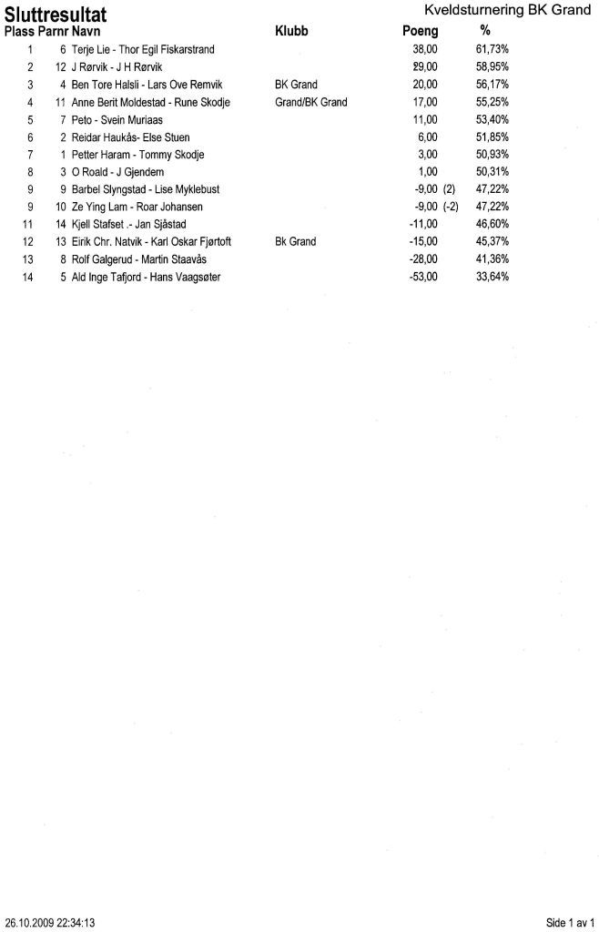 Ekteparet Gunvor og Kjell Brevik vart kretsmestra med komfortabel margin i KM-veteran. BK Grand tapeteserte pallen. På andre plass følgde Arne Stavik (92 år!!) - Per B Lund og på tredjeplass Rolv Sunde og Arne Kaaresen.
