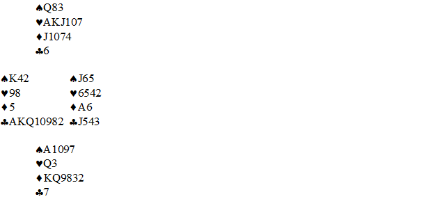 Spillet skriver seg fra EM mix par. Med alle i sonen åpnet sør 1 ruter. Vest valgte naturlig nok å melde inn 2 kløver, og nord sa 2 hjerter. Helness i øst støttet makkeren til 3 kløver, og sør gjentok ruteren. Vest hoppet til 5 kløver, men nord avsluttet meldingsforløpet med 5 ruter. Ut kom kløver ess. Når det ligger singelton i utspillsfargen i bordet, er regelen at man skal gi makker et lavinthalsignal, altså indikere med høyt eller lavt kort hvilken farge man ønsker skift til. Her ville nok de fleste lagt den mellomstore femmeren, for å si at man ikke har noen preferanse mellom spar og hjerter. Vest kan ikke vite annet enn at makker ikke har spar ess, og skifter vel dermed til en hjerter eller kanskje trumf. Men Helness i øst tenkte dypere: Han så selv på fire små hjerter, hvilket betyr at fargen må være tilnærmet løpende for spillefører, så hvor skal beten komme fra? Har vest spar ess er jo beten opplagt, men har hun spar konge, er den eneste betesjansen at spillefører gjør et feilvalg i spar. Dermed la Helness kløver knekt under esset, en klar oppfordring til sparskift. Vest skiftet lydig spar to, og man kan ikke klandre spillfører for å legge liten i bordet, i håp om motsatt fordeling av sparhonnørene. Da knekten krevde esset var det over og ut; forsvaret hadde beten på spar konge idet de kom inn på ruter ess. Det å finne påspillet av kløver knekt i høyt tempo ved bordet, er imponerende. Bare en liten tenkepause i første stikk vil fort kunne avsløre hele svindelen.