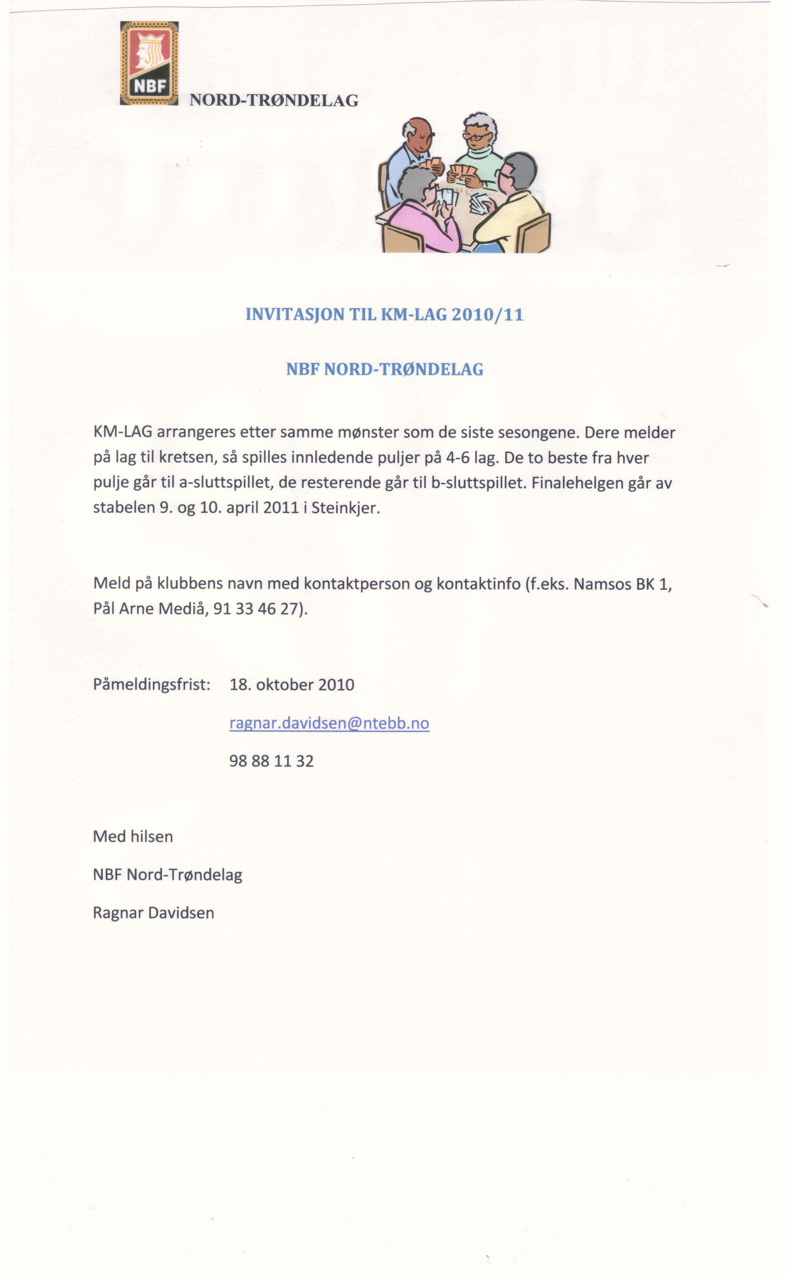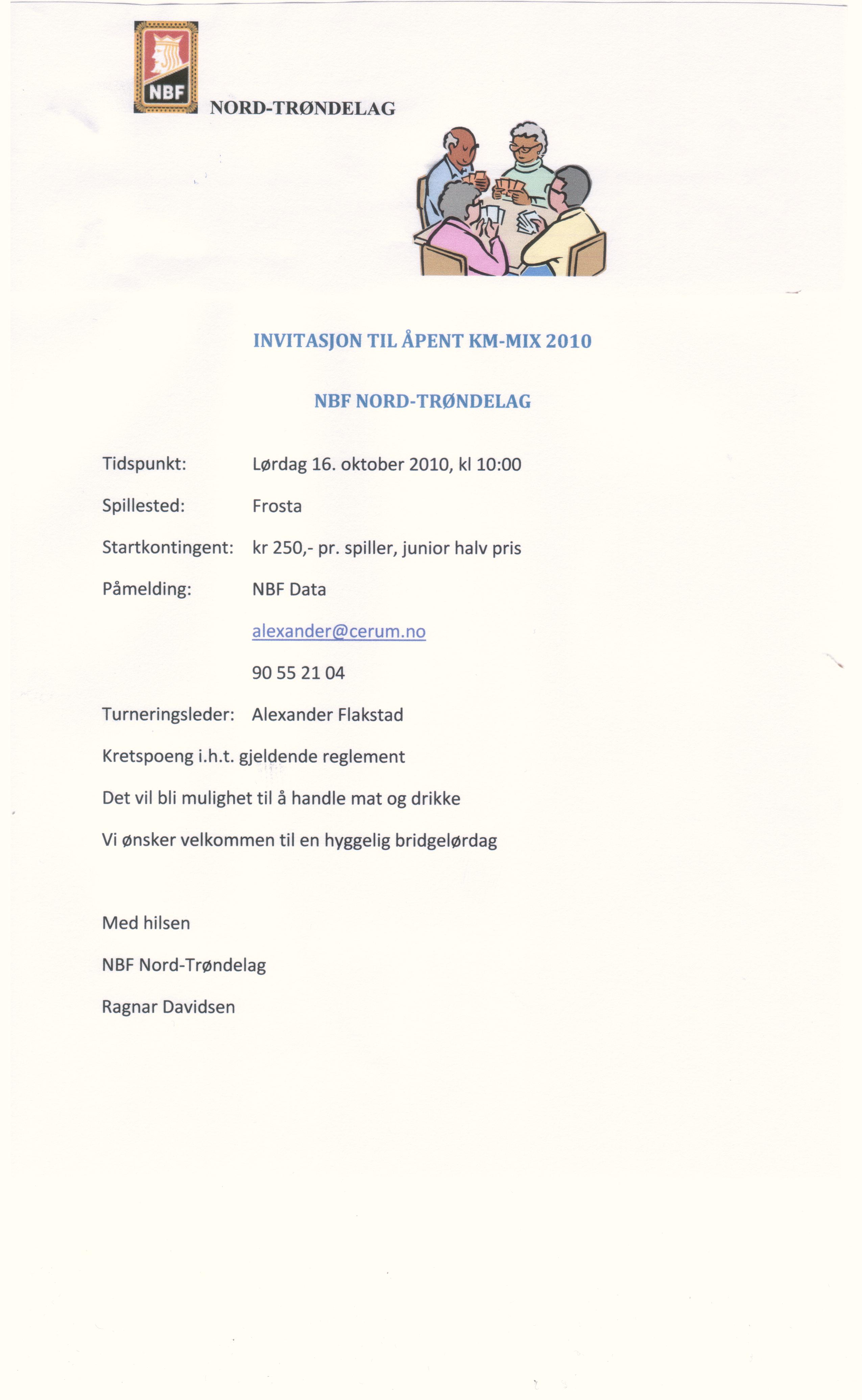 I morgen er det KM runde, og flere hadde annonsert at de ikke kunne møte opp idag. Derfor så ble det spilt Monrad i 1 pulje. Likevel 23 par må vi si oss fornøyd med.Øyvind og Arne spilte bra de siste rundene og vant en relativ klar seier til slutt. På en klar 2.plass kom Stig og Egil, som ledet klart lenge. Torill og Hilde fikk 3 plass rett foran Toralf og John. RESULTATLISTEN